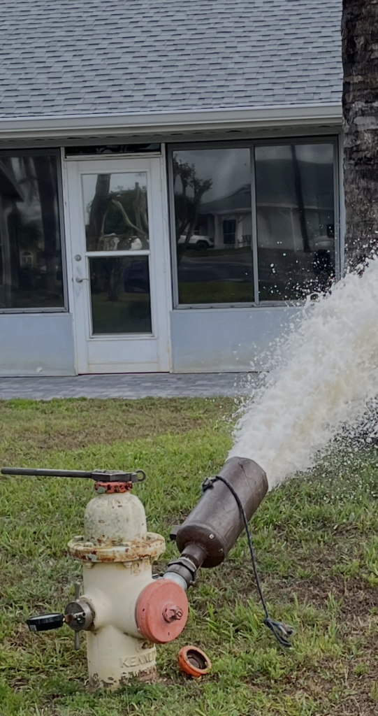 The fire hydrants were flushed on 4/9/26 by an independent company after we were made awared of the need for a different approach. These professionals used an adapted valve that measured the flow of water being released.