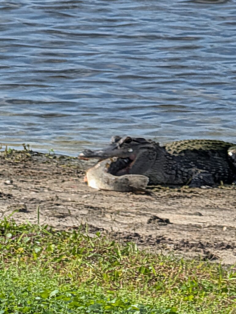 This alligator was seen by hole #7 , enjoying a meal of fish! Beware.