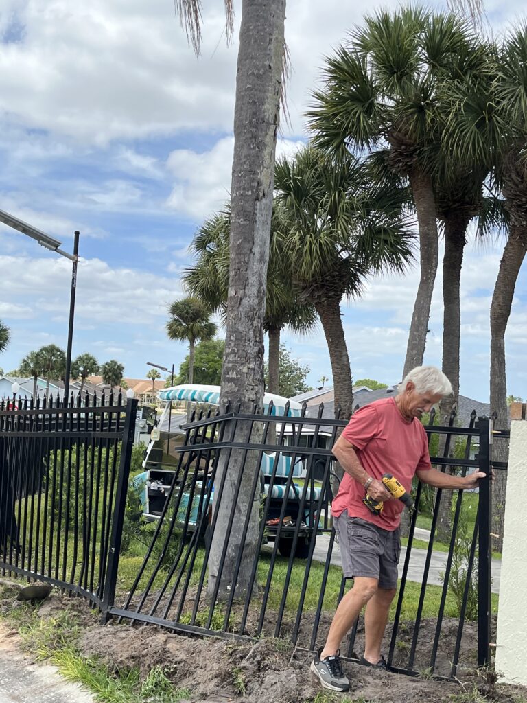 One of Lake Henry’s “unsung heroes”, volunteer Russ Jones, works to replace the fence by the front Entrance Gate. The fence was damaged when a truck attempted to turn around. Unfortunately, although our security camera recorded the event, the license plate was not visible enough to be able to report the incident.
