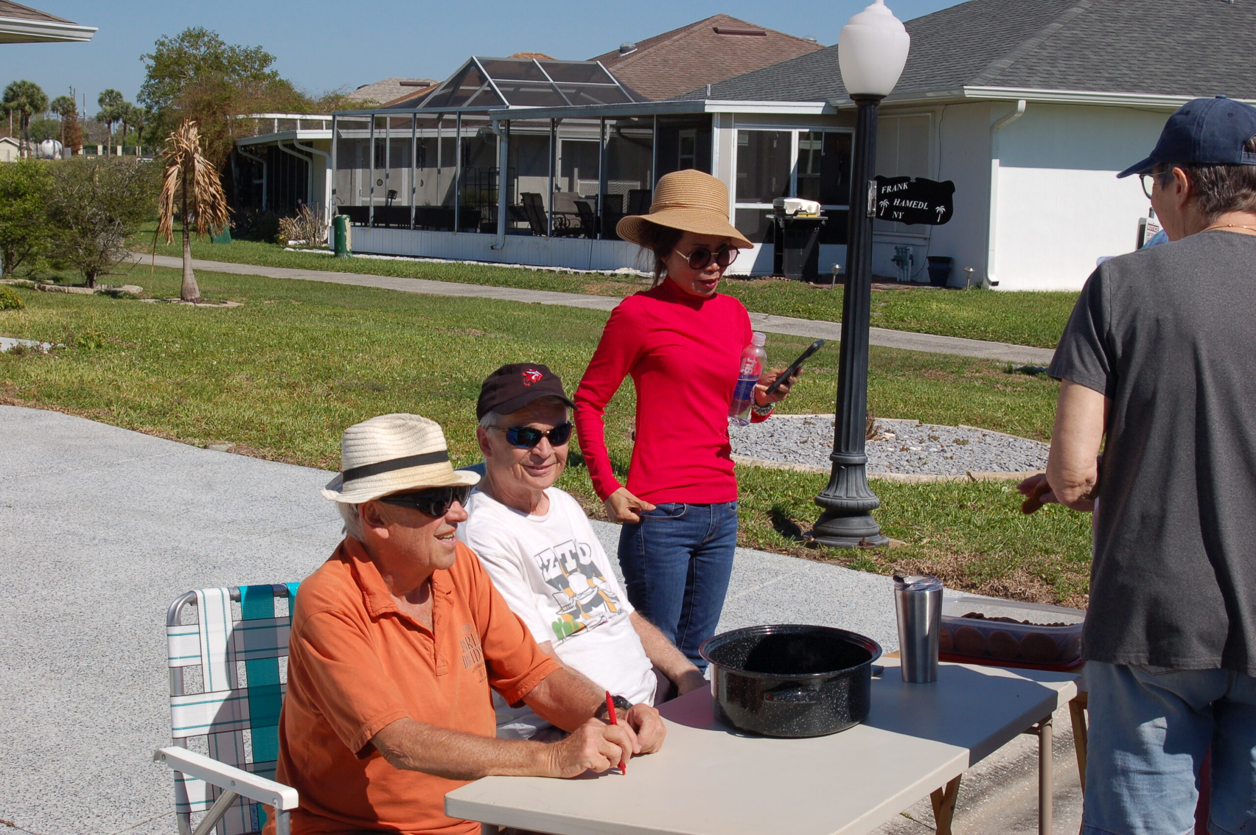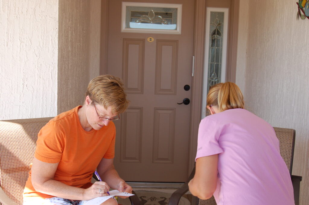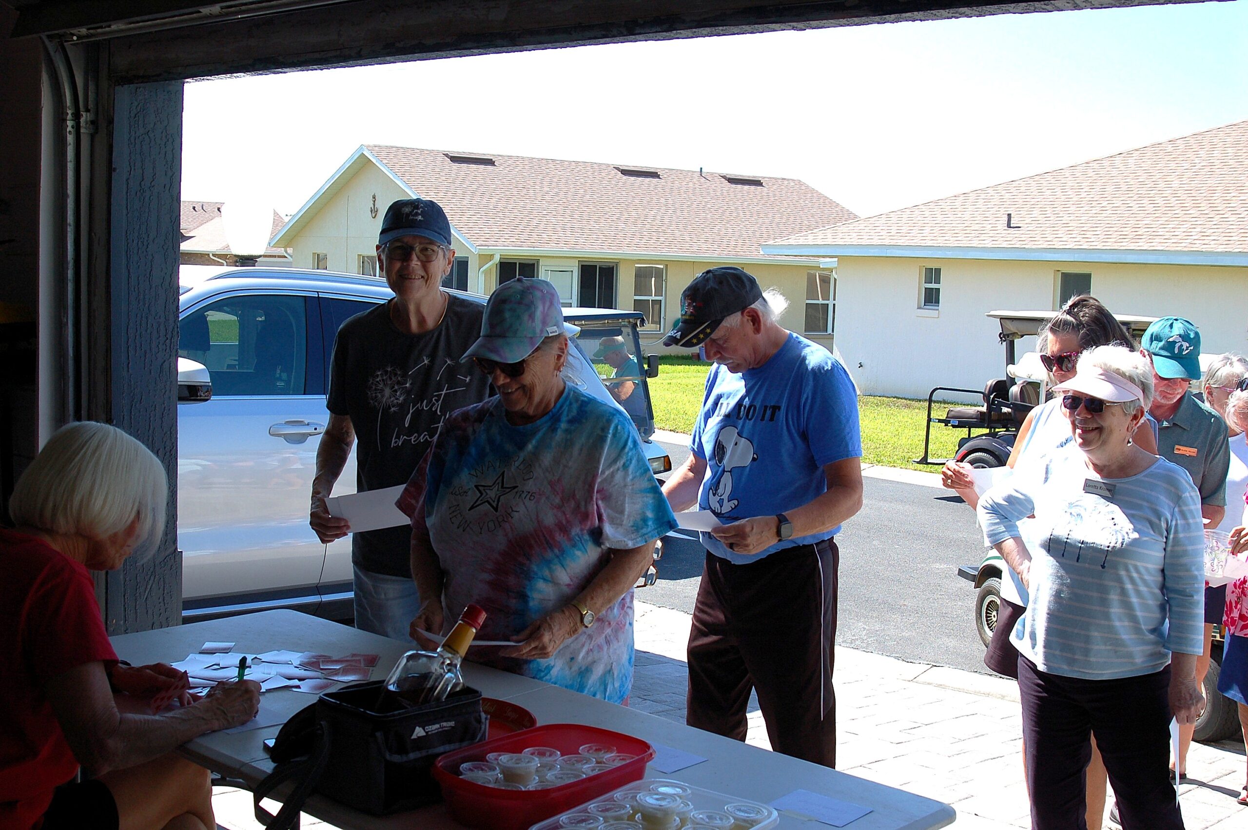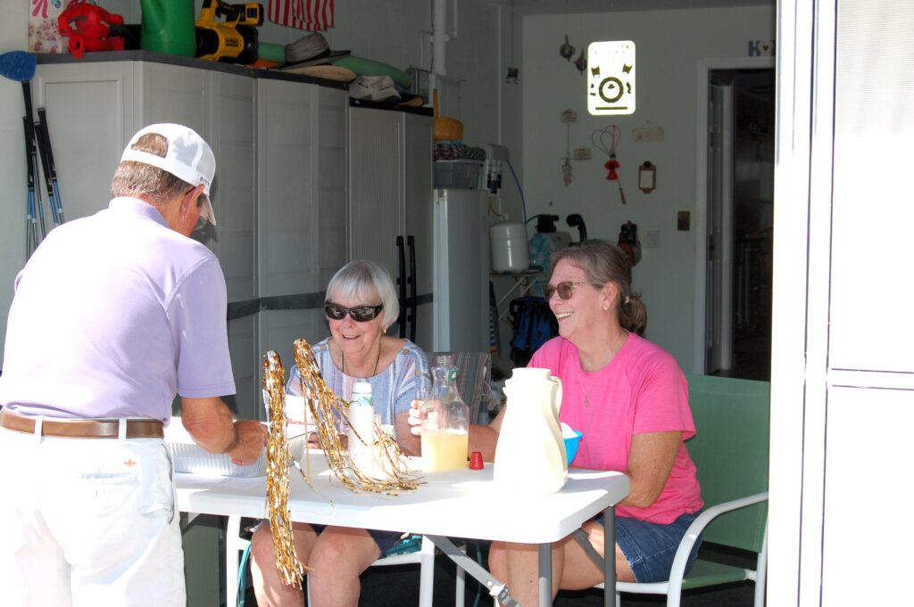 Participants wait to choose a card from host home of Patti and Phil Shaffer.