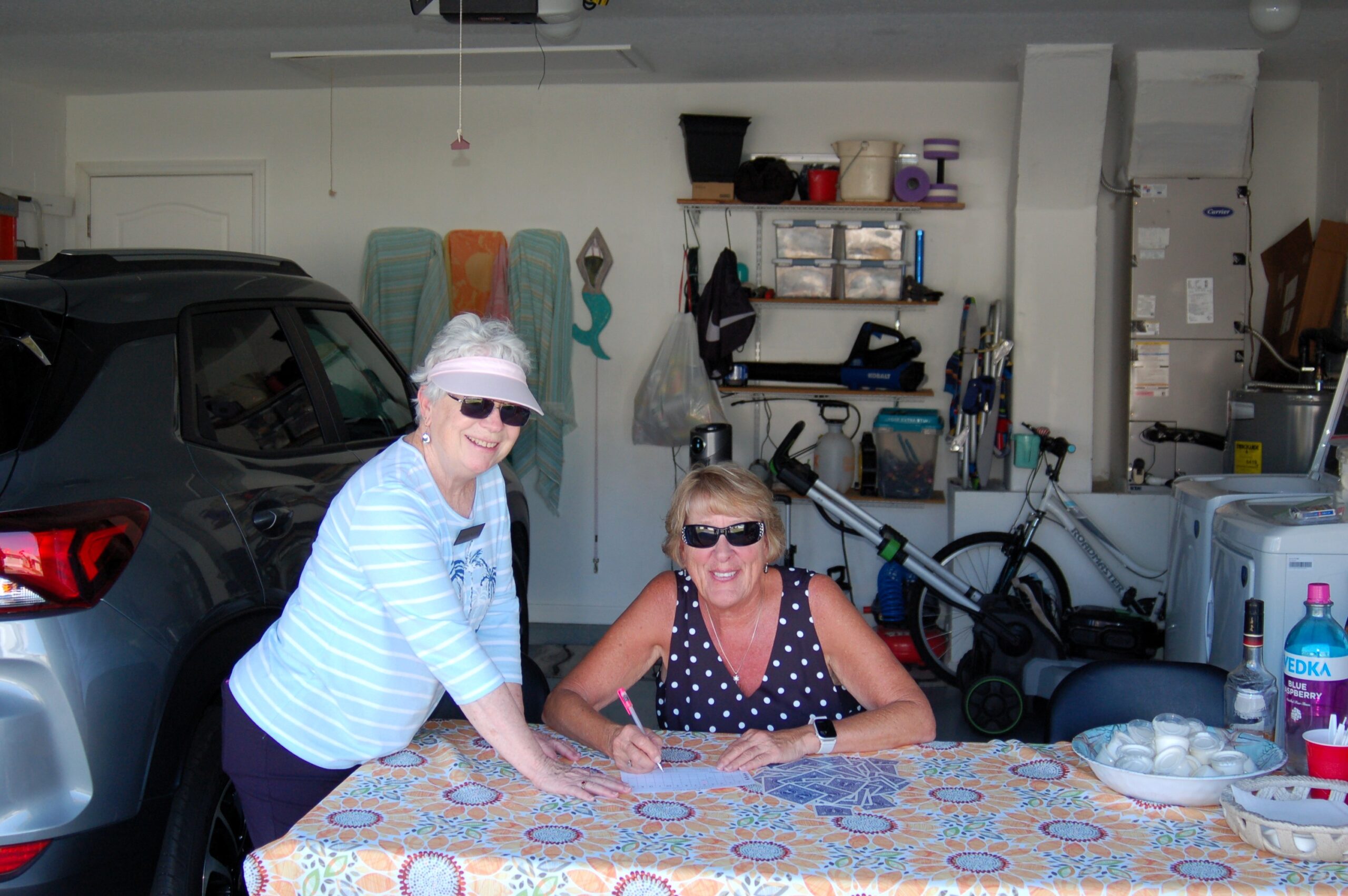 Photos by Herb Kramer. Joann Hoffman leads another successful Poker Run with helpers Marla Coy and Teresa Guarino.