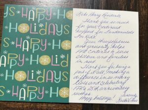 Thank you so much for your continued support for Fundamentals For Kids. Your thoughtfulness and generosity helps FFK continue to serve children and families in need. Thank you for being a part of it all, making a difference in so many lives and celebrating FFK‘s 25th anniversary with us. Happy holidays!”